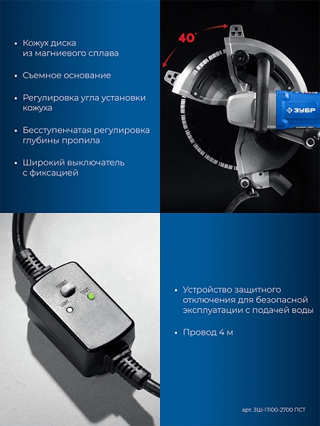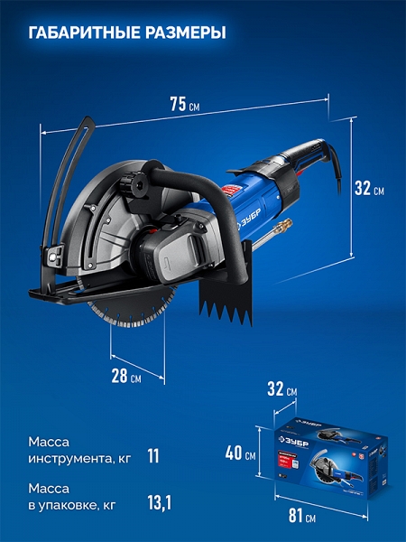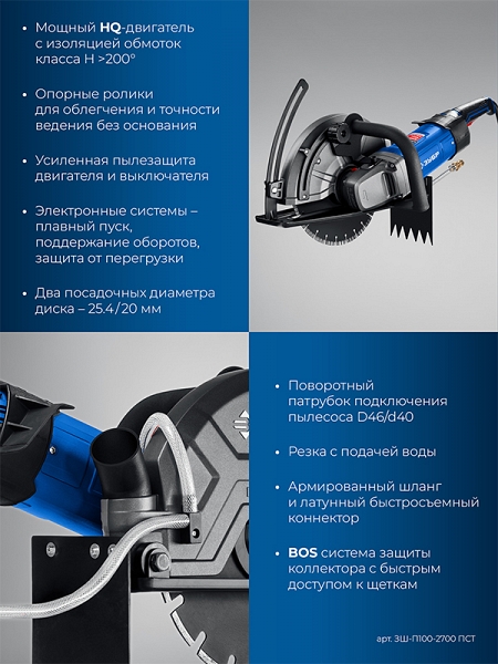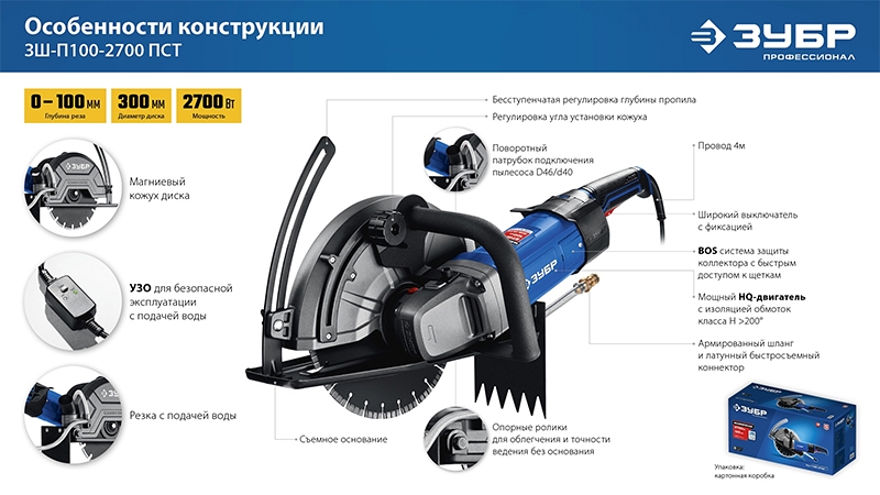 Преимущества электрического резчика по бетону Зубр Профессионал ЗШ-П100-2700 ПСТ: