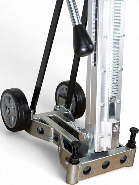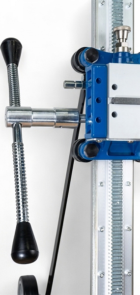 - Роликовая подача хода: металлические ролики каретки с гребневым исполнением обеспечивают точную подачу алмазной коронки и отсутствие люфтов