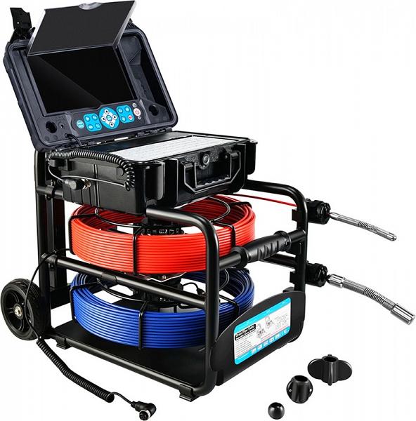 Проталкиваемая система видеоинспекции канализационных труб Rotorica 3499F-Dual-30 (Роторика 3499Ф-Дуал-30) с камерами CMOS, Ø 18 × 135 мм, широким углом обзора 82° и Ø 23 × 155 мм, широким углом обзора 120°, разрешением формата Full HD 1080P AHD (1920 × 1080), записью видео и аудио, встроенными счетчиками расстояния и катушками с кабелями Ø 4,8 мм × 30 м и Ø 5,2 мм × 30 м предназначена для осмотра внутренних трубопроводов, канализации и сливов, а также для инспекции каналов, дымоходов, воздуховодов в производствах и домах.